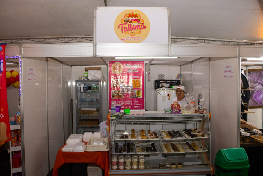 Chegando ao Festimar pela segunda vez consecutiva, a Talismã Doces e Tortas conta com uma vasta seleção de doces, dos mais variados tipos. A empresa cicla entre produção própria e doces vindos de Pelotas. A visita ao festival pede uma pausa para comer um docinho e adoçar o momento.